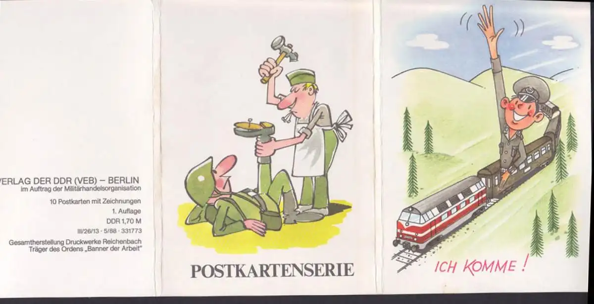Nationale Volksarmee der DDR, 10 Motivkarten vom Militärverlag, 1. Auflage, 2 Ktn beschrieben, Rest unbeschrieben