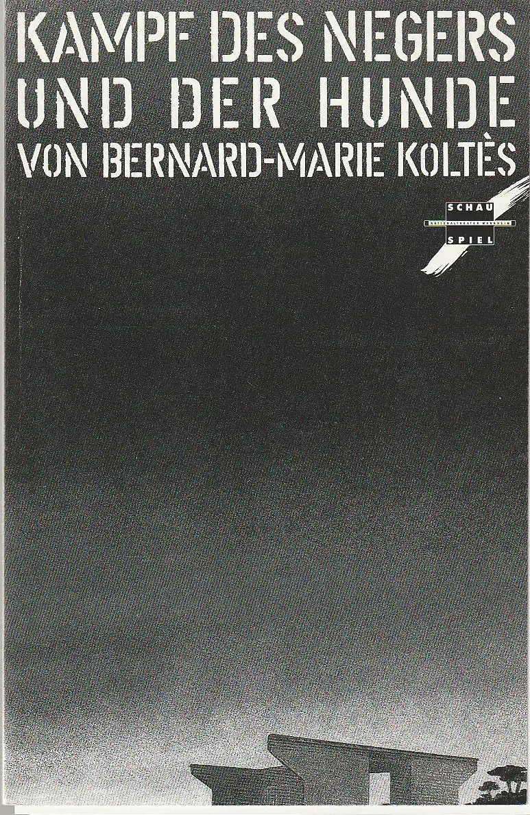 ( Combat de negre et de chiens ). Inszenierung: Bruno Klimek. Bühne: Thomas Armster. Kostüme: Alide Büld. Musik: Abdourahmane Diop. Mitwirkende: Ernst Alisch, Johann E. Yamoah, Cornelia Heyse, Werner Galas - Theaterprogramm, Opernprogramm, Ballettprogramm, Musicalprogramm, Konzertprogramm, Theatermemorabilia, Programmhefte Sammlung, deutsche Theatergeschichte.