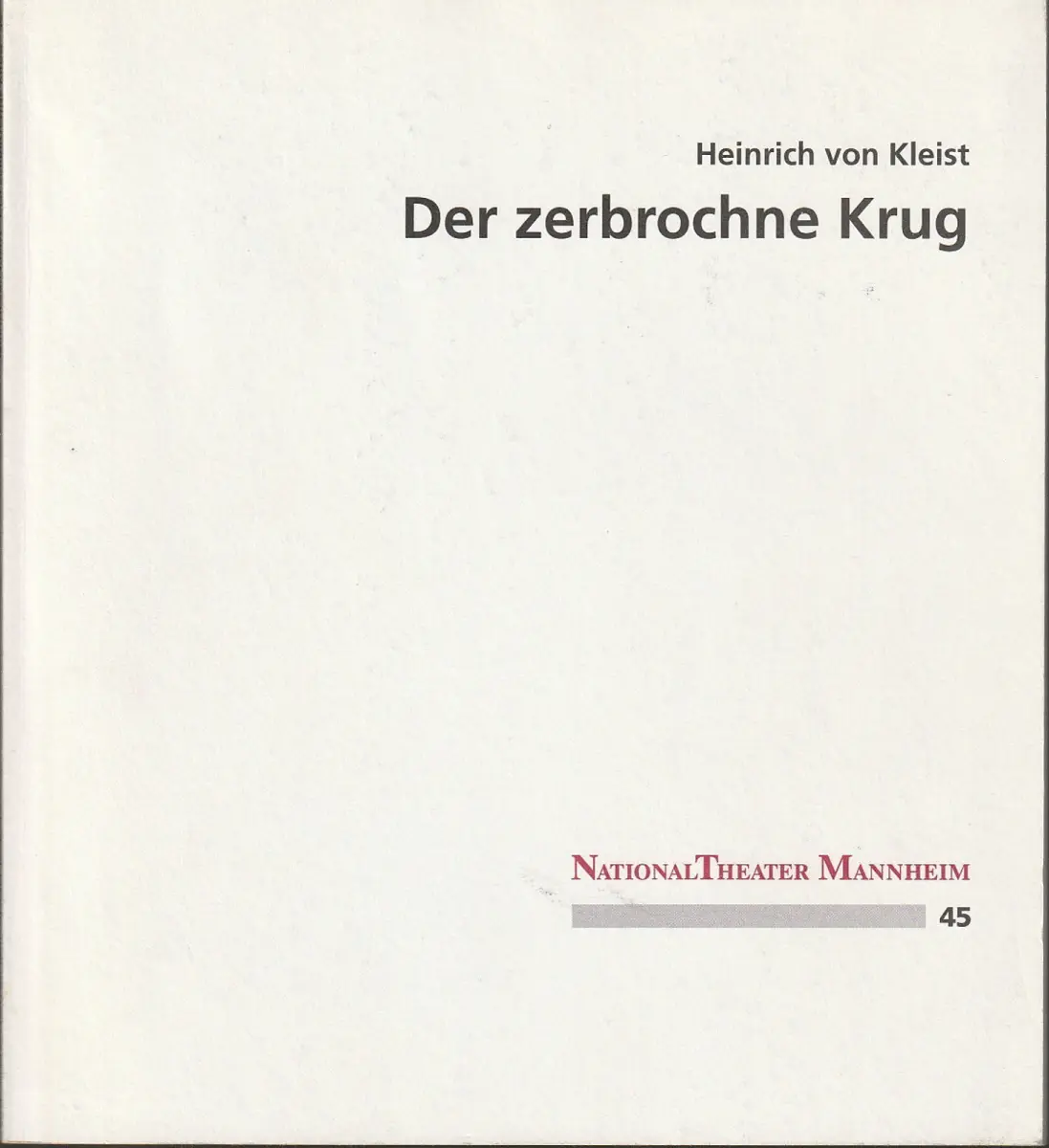 Nationaltheater Mannheim, Klaus Schultz, Heike Frank: Programmheft Heinrich von Kleist DER ZERBROCHNE KRUG Premiere 3. Dezember 1994 216. Spielzeit 1994 / 95 Nr. 45.