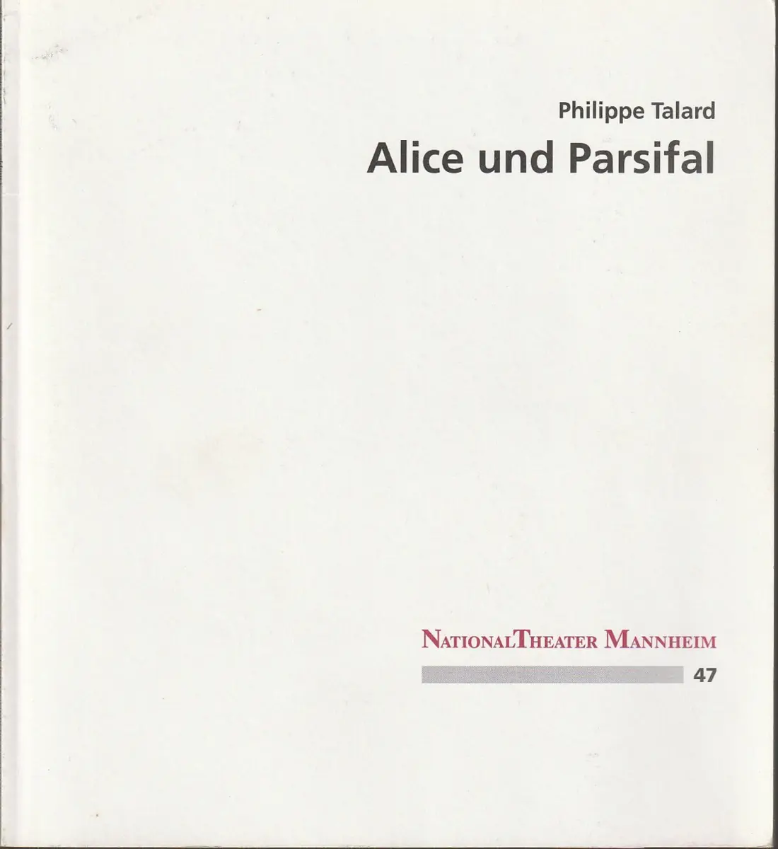 Nationaltheater Mannheim, Klaus Schultz, Peter Stamer, Daniel Busch: Programmheft Philippe Talard ALICE UND PARSIFAL Premiere 7. Januar 1995 216. Spielzeit 1994 / 95 Nr. 47.