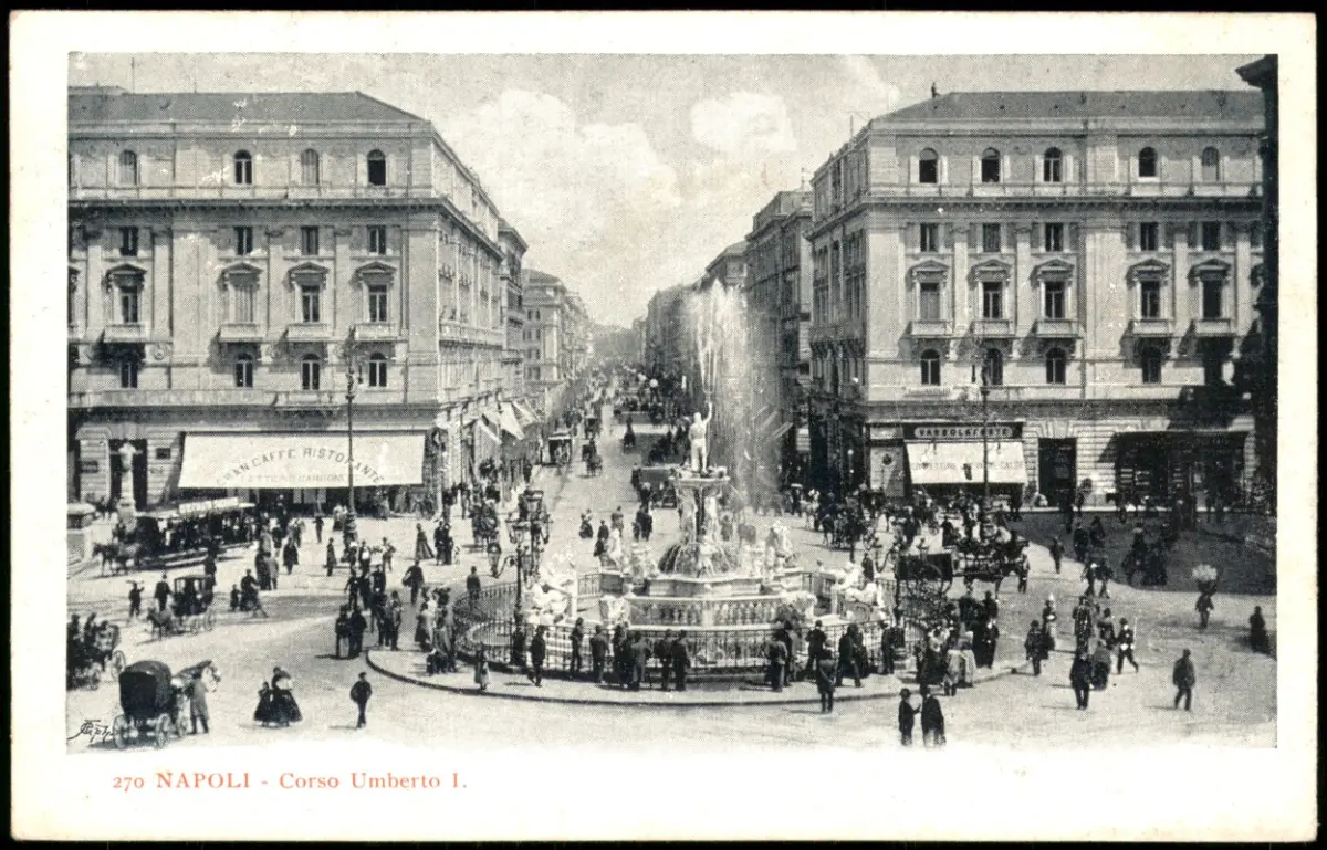 Neapel Napoli Stadtteilansicht Verkehr Geschäfte am Corso Umberto I. 1900