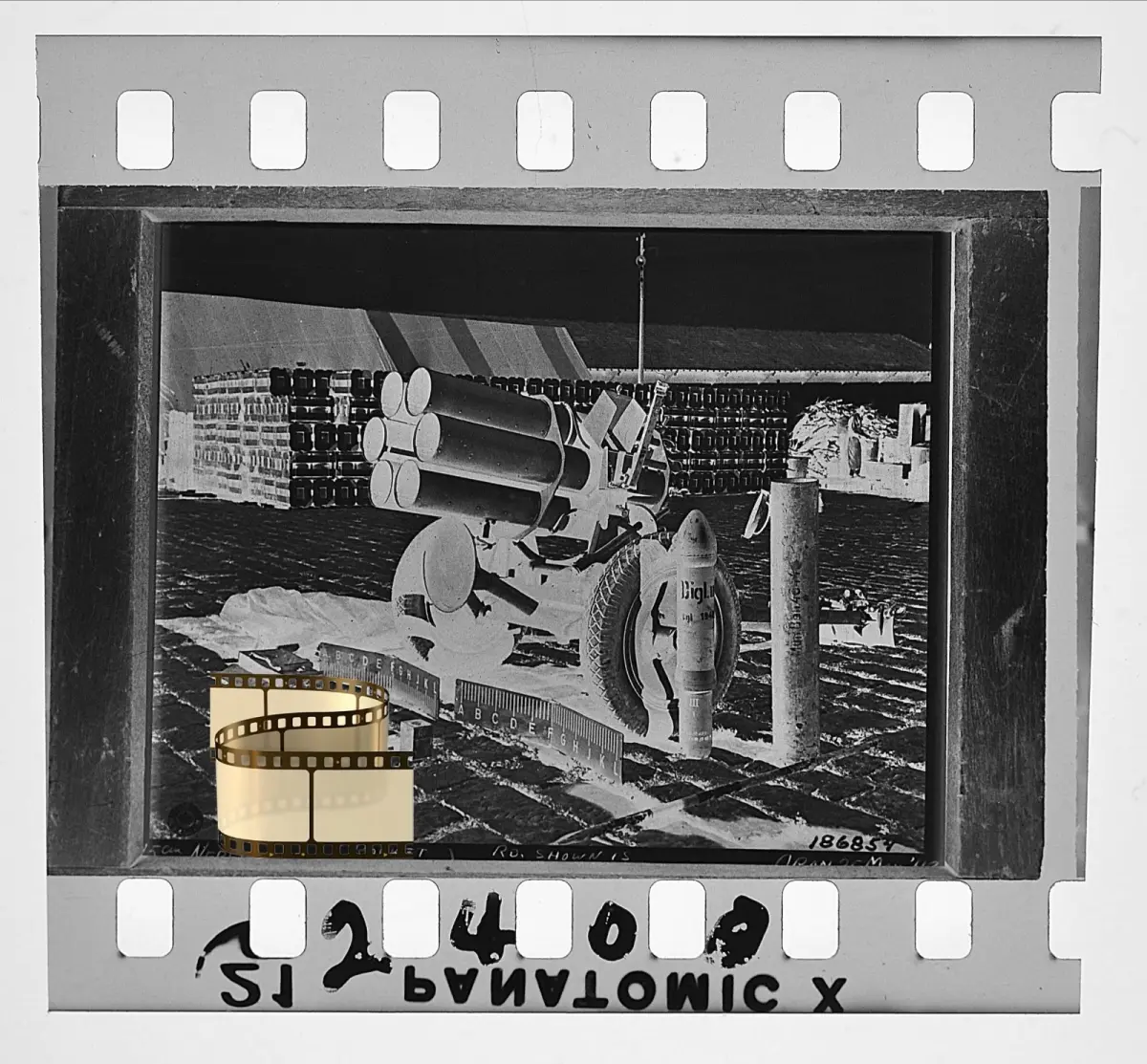Negativ 4x3,5cm Raketenwerfer Anlage zugehöriger Munition Messskalen Lagerhalle
