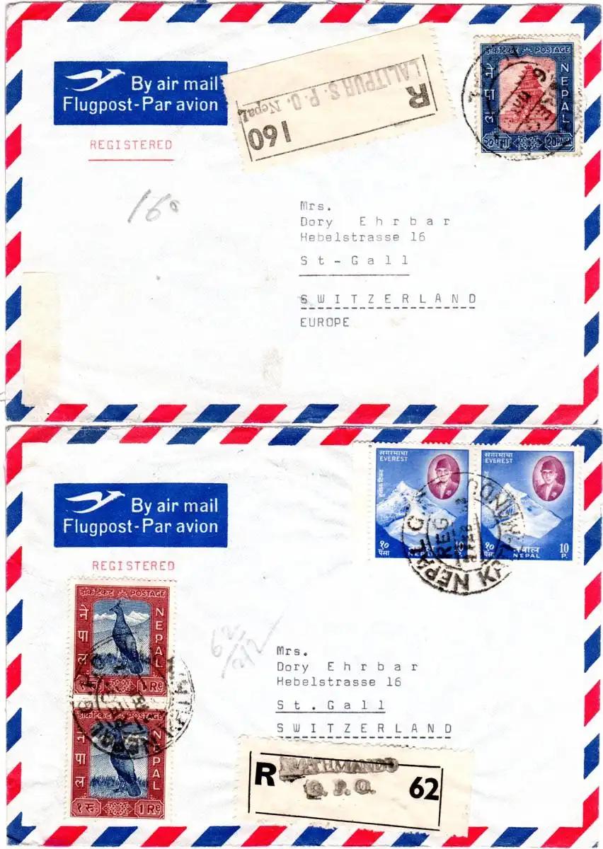 Nepal 1962, 2 Reko Briefe eines Int. Red-Cross Piloten v. Kathmandu i.d. Schweiz