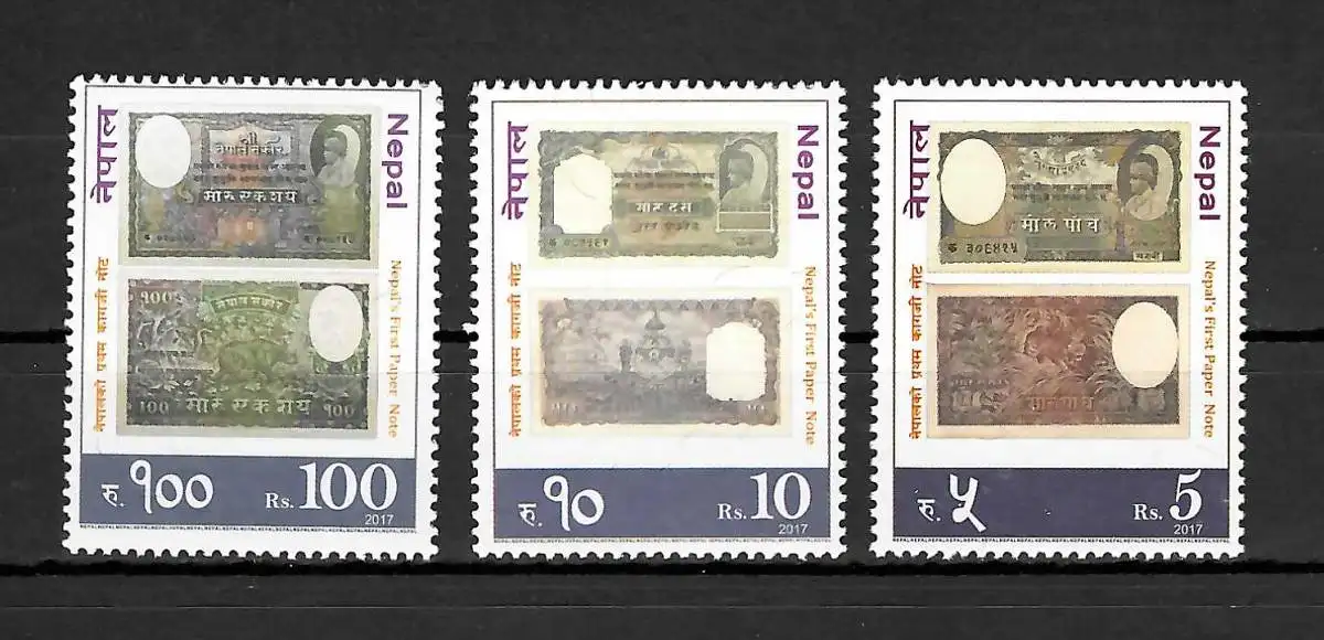 Nepal 2017: Geldscheine auf Briefmarken, postfrisch