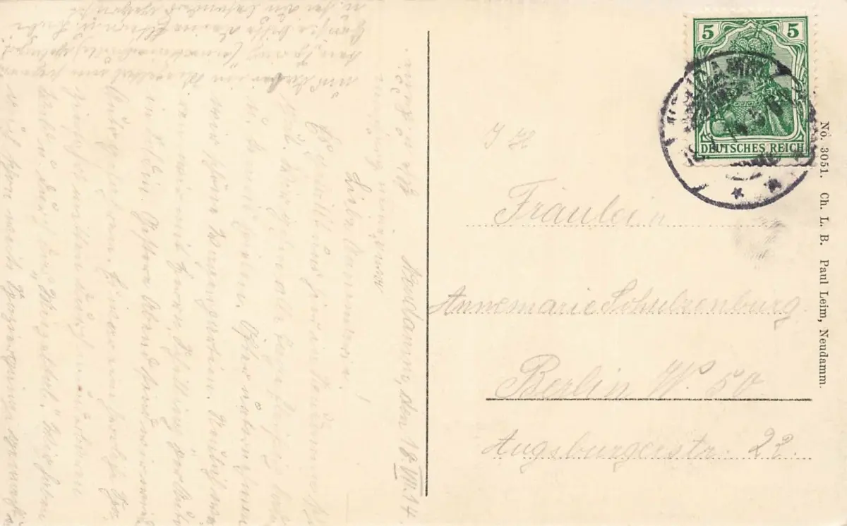 Rückseite: gelaufen 1914 von Neudamm