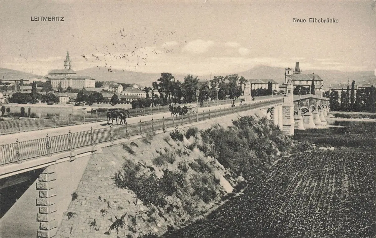 Neue Elbbrücke in Leitmeritz Litoměřice Böhmen Postkarte AK 1916