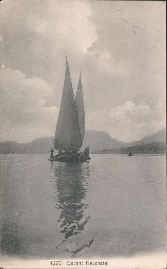 Neuenburg Neuchâtel (Neufchâtel) Devant Neuchâtel See Partie, mit Segelboot 1907
