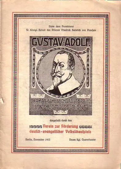 Neues Königlicher Operntheater. - Devrient, Otto: Programm-Heft zu 'Gustav Adolf'. Historisches dramatisches Charakterbild in fünf Aufzügen. Dargestellt vom Verein zur Förderung deutsch-evangelischer Volksschauspiele durch 500 Mitglieder evangelischer Gem