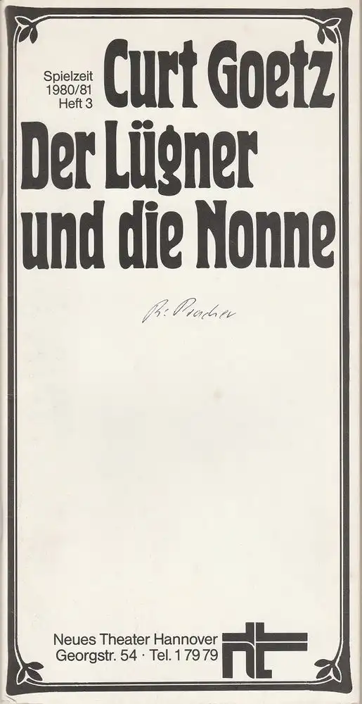 Neues Theater Hannover, James von Berlepsch, Carola Schirmer, Ursula König, Achim Schafft ( Fotos ): Programmheft Curt Goetz: DER LÜGNER UND DIE NONNE Spielzeit 1980 / 81 Heft 3.