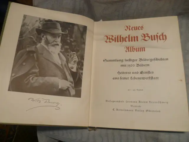 Neues Wilhelm Busch Album Sammlung lustiger Bildergeschichten mit 1500 Bildern Heiteres und Ernstes aus seiner Lebenswerkstatt 443.-447. Tausend Verlagsanstalt Hermann Klemm Braunschweig, Bertelsmann Verlag, von 1950416 Seiten 1963g goldgeprägter Ganzleinenband etwas berieben und bestoßen, angestaubt, innen und außen bis auf kleinere Gebrauchsspuren gutes Exemplar