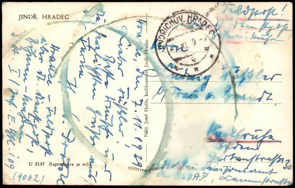 Neuhaus / Böhmen Jindřichův Hradec Blick auf die Stadt 1939 gel. Feldpost WK2