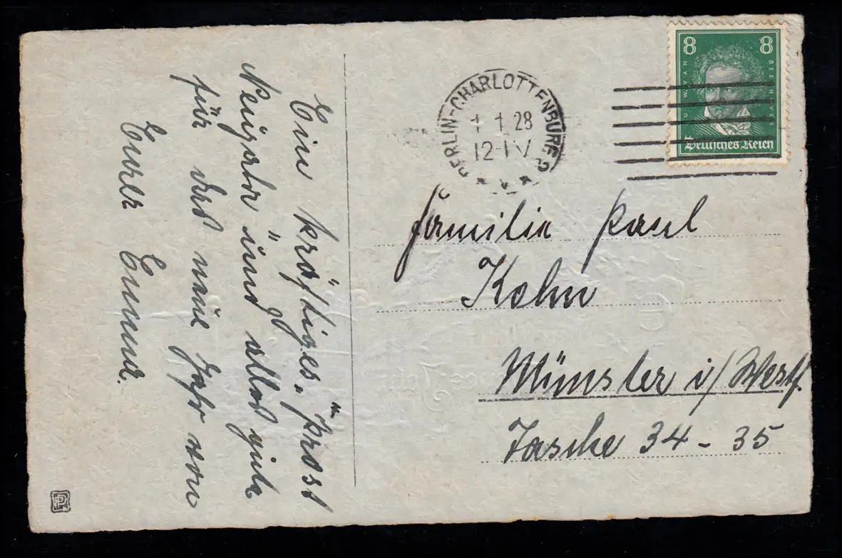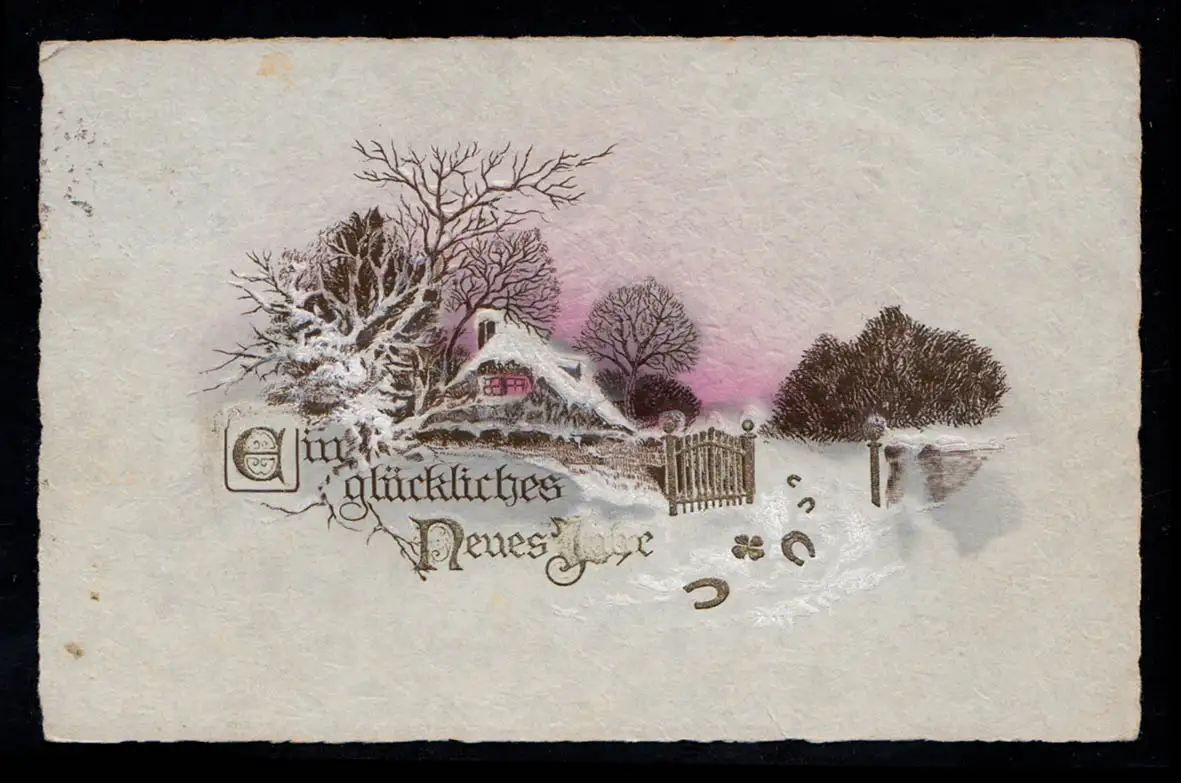 Neujahr - Gehöft im Schnee, Hufeisen, Kleeblatt BERLIN-CHARLOTTENBURG 1.1.28