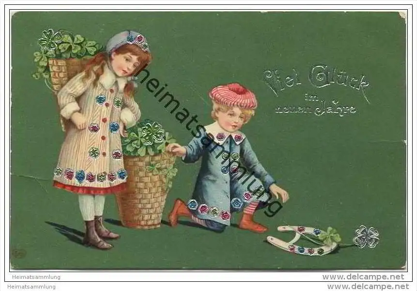 Neujahr - Junge und Mädchen - Klee - Hufeisen - Verlag EAS - Gebrauchsspuren - Knick links (E7356) gel. 1909