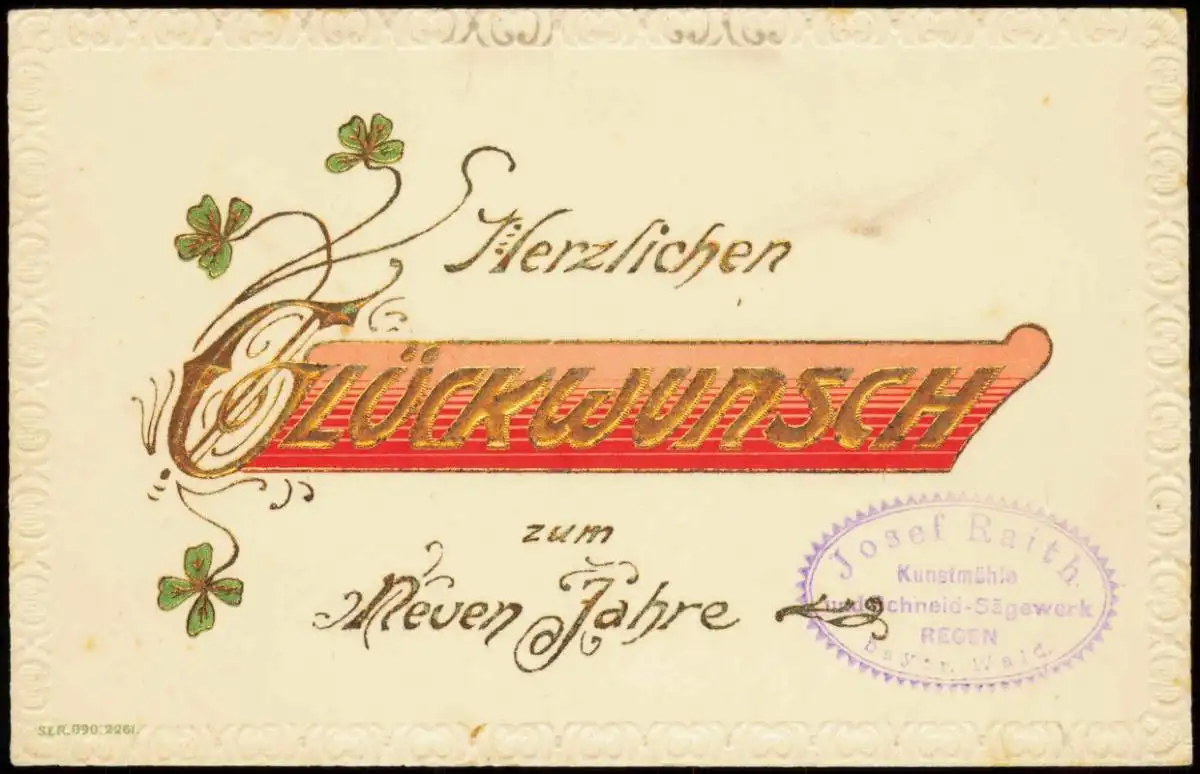 Name: Neujahr Sylvester New Year Kleeblatt Goldschrift