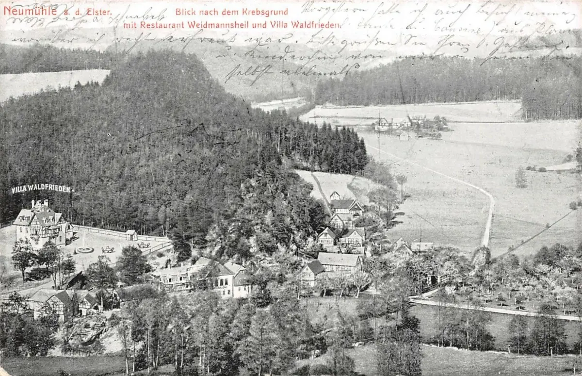 Neumühle a. d. Elster Krebsgrund Rest. Weidmannsheil Villa Waldfrieden AK 1905