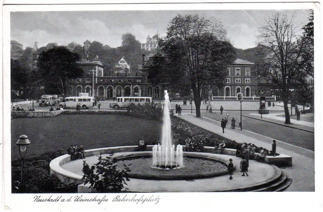 Neustadt a.d. Weinstrasse, Bahnhofsplatz m. Omnibussen, 1939 gebr. sw-AK.