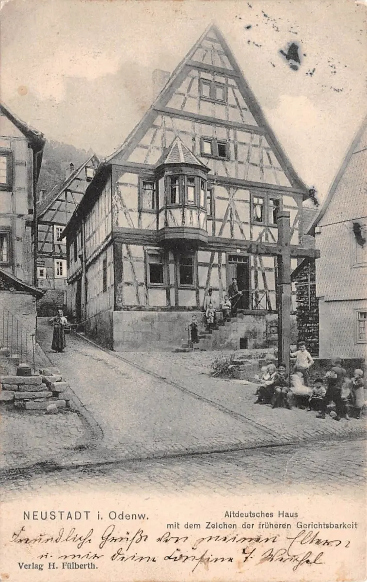 Neustadt i. Odenw. Altdeutsches Haus mit dem Zeichen fr. Ger. Postkarte AK 1907