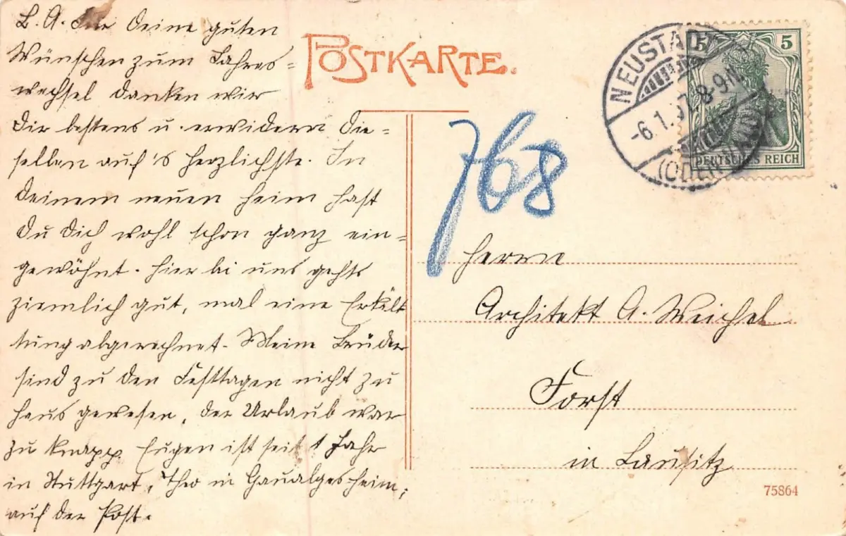 Rückseite: gelaufen 1907 von Neustadt (Odenwald)