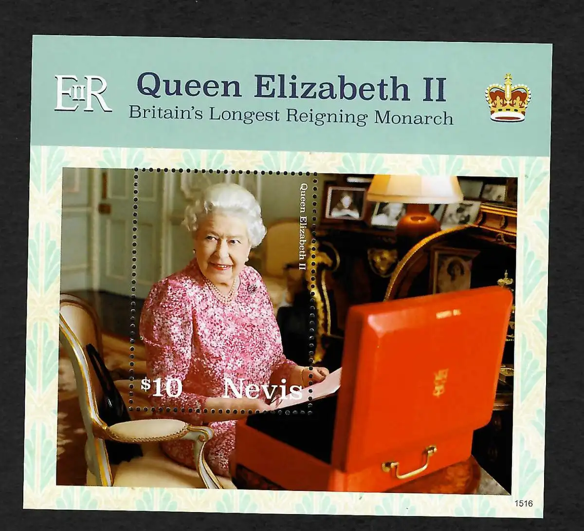 Nevis: Queen Elizsabeth II, longest Reigning British Monarch, mnh