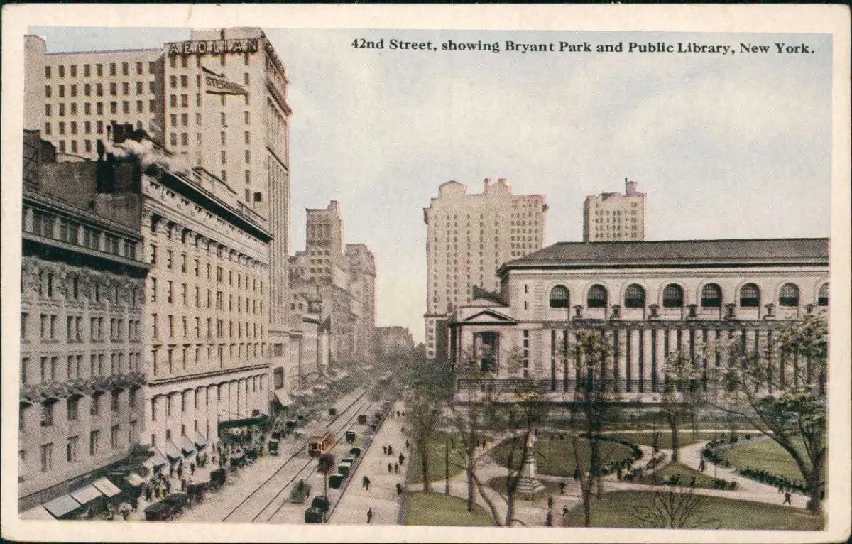 New York City 42nd Street, showing Bryant Park and Public Library 1920