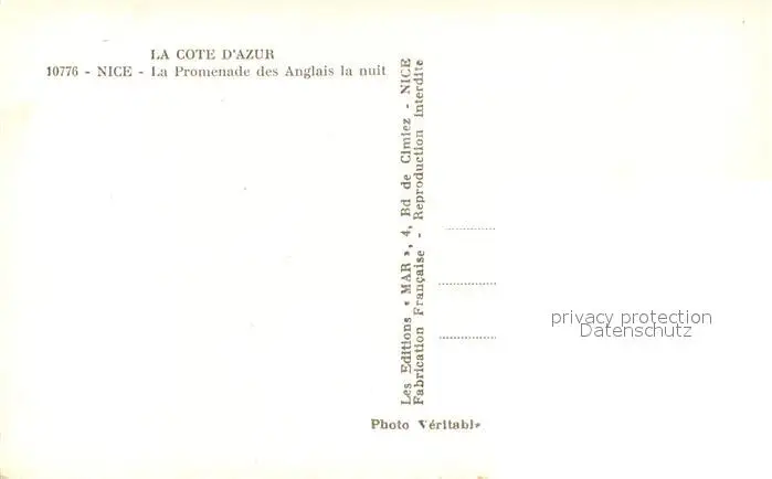 Nice_Alpes_Maritimes Promenade des Anglais la nuit Nice_Alpes_Maritimes postalisch nicht gelaufen 1921-1965 Erhaltung siehe scans [LiesaD40] LiesID40