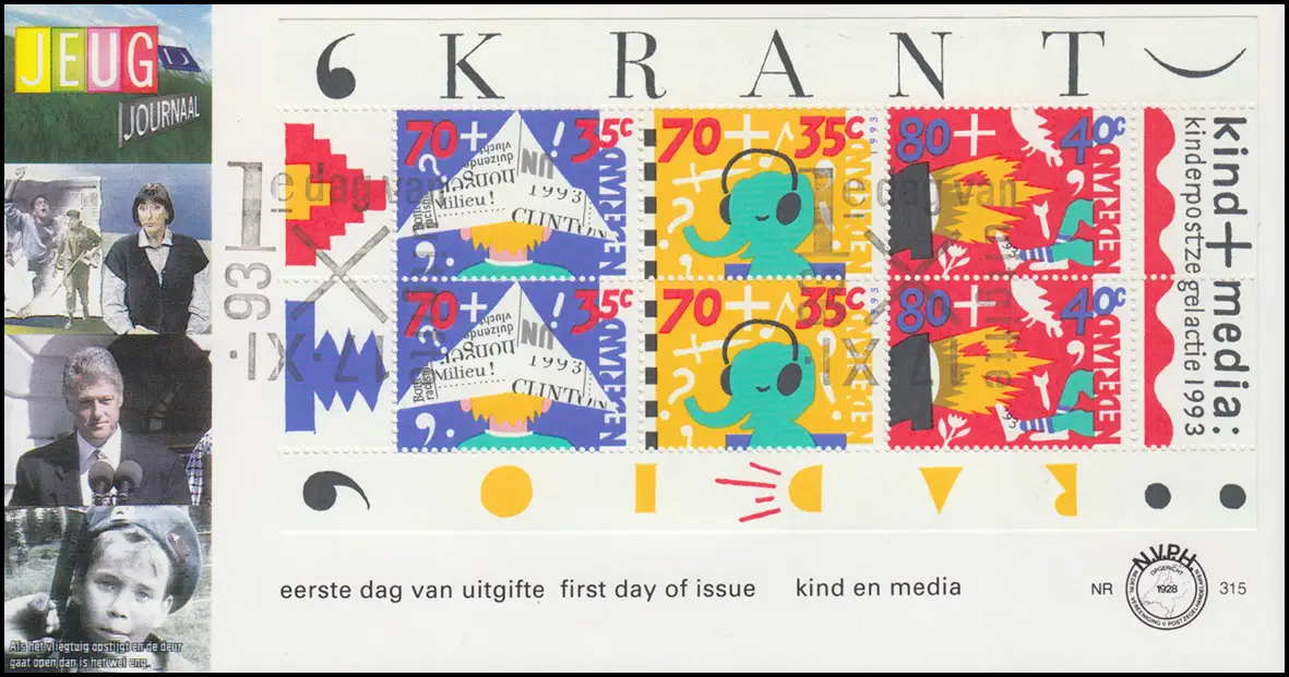 Niederlande Blockausgabe Zeitung Kinder+Medien Krant kind+media Schmuck-FDC 1993