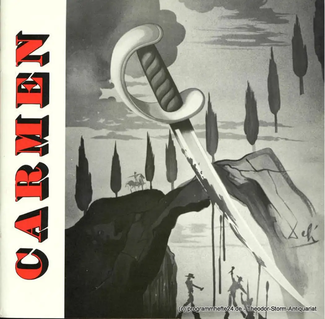 Musik von Georges Bizet. Musikalische Leitung: Bernhard Lang. Inszenierung: Günter Roth, Abendspielleitung: Tania Collette. Bühnenbild und Kostüme: Ottowerner Meyer. Mitwirkende: Anton de Ridder, Klaus-Michael Reeh, Hubert Weindel, Leonard Delany, Rolf Becker, Helmut Guhl, Renate Behle, u.a. - Schlüsselwörter: Theaterprogramm, Opernprogramm, Ballettprogramm, Musicalprogramm, Konzertprogramm, Theatermemorabilia, Programmhefte Sammlung, deutsche Theatergeschichte.