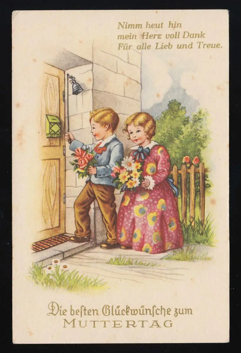 Nimm heut hin mein Herz voll Dank, Kinder bringen Blumen Muttertag, ungebraucht
