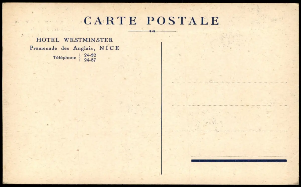 Name: Künstlerkarte HOTEL WESTMINSTER Promenade des Anglais