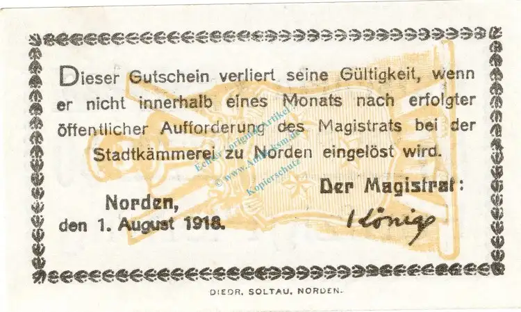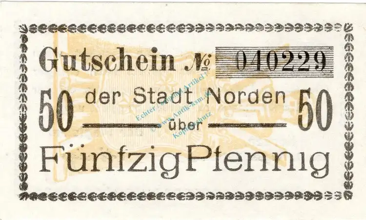 Norden , Notgeld 50 Pfennig Schein unc-kfr. Ti.5150.05.15 , Niedersachsen 1918 Verkehrsausgabe