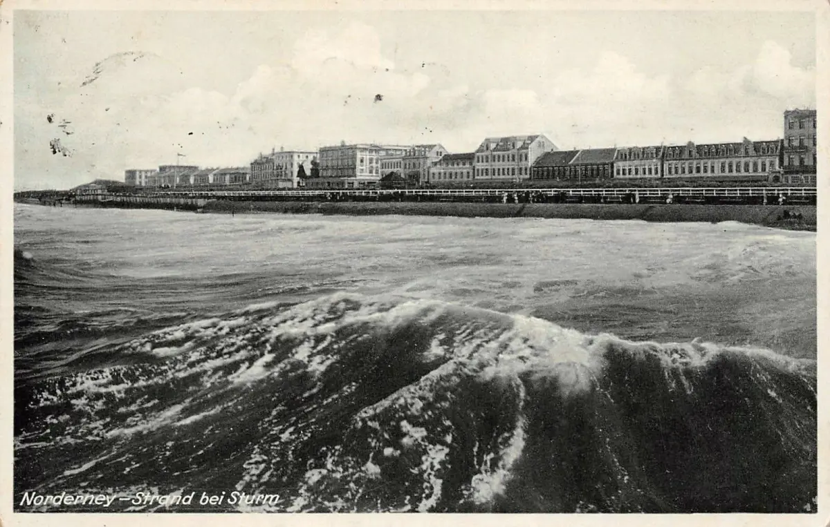 Norderney Strand bei Sturm Niedersachsen Postkarte AK 1937