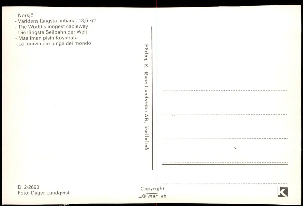 Norsjö Världens längsta linbana, World's longest cableway 1980