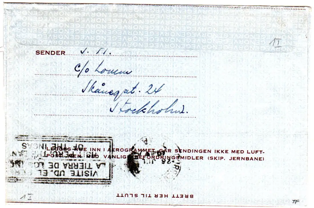 Norwegen 1948, sauber gebr. 60 öre Aerogram (1 I) v. Oslo n. Lima Peru.