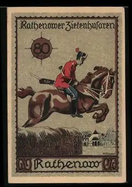 Notgeld Rathenow, 80 Pfennig, Rathenower Zietenhusar, Stadtansicht mit Uferpartie