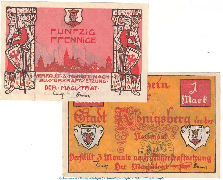 Notgeld Stadt Königsberg 722.1.a , Set mit 2 Scheinen -Stempel- in kfr. o.D. Brandenburg Seriennotgeld