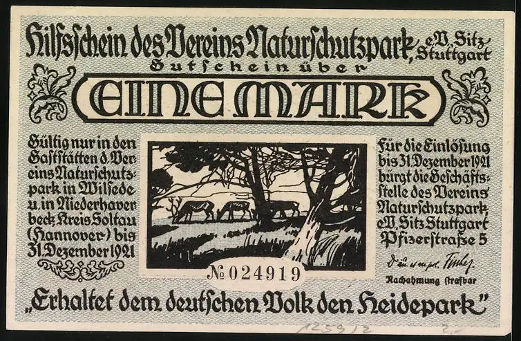 Notgeld Stuttgart, 1921, 1 Mark, Die wilde Jagd auf dem Wilseder Berg, No 024919
