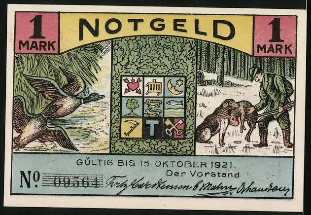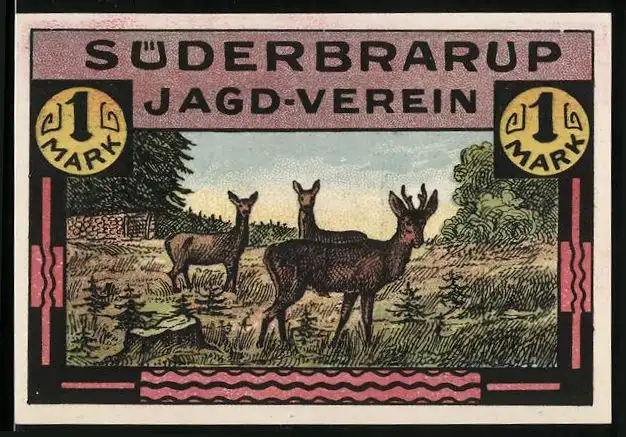 Notgeld Süderbrarup 1921, 1 Mark, Jagd-Verein, Rehbock mit Rehen