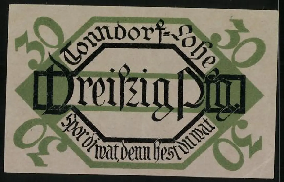 Notgeld Tonndorf-Lohe 1921, 30 Pfennig, Alter Grenzstein und Schriftzüge