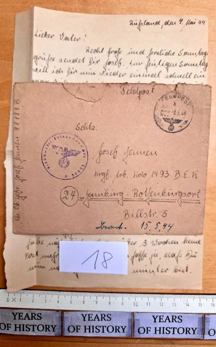 Feldpostbrief mit Inhalt Krgl. Arbeit. Kdo. 1493 BEK