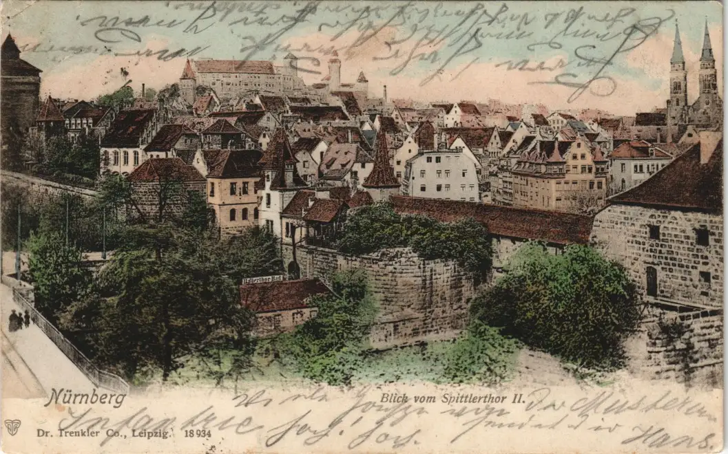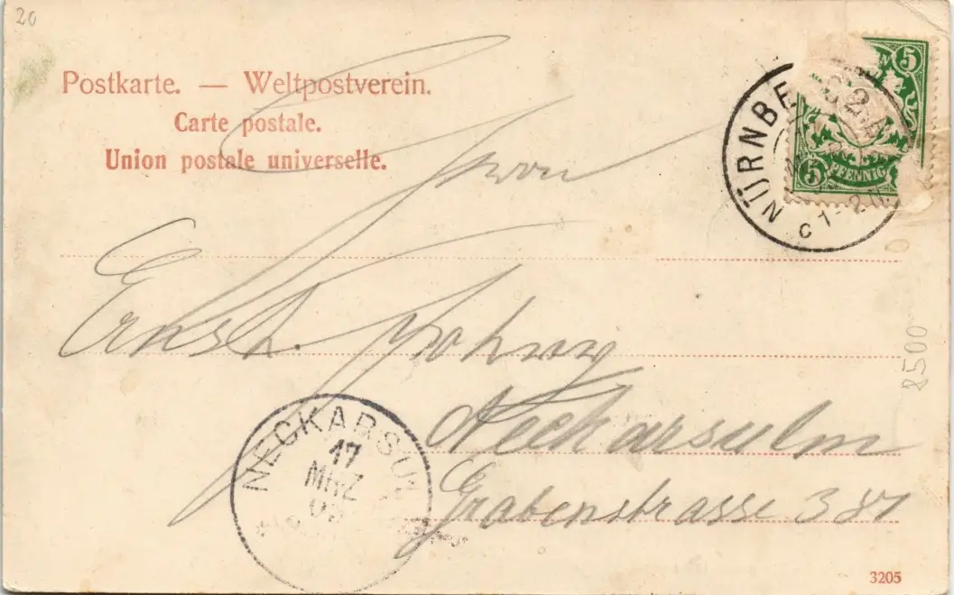 Nürnberg Blick vom Spittlertor II. 1903 Neckarsulm (mit Ankunftsstempel)