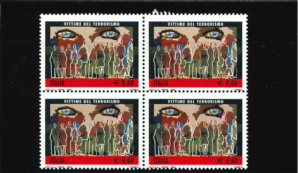 MNH - Vollgummi - OPFER DES TERRORISMUS GOLDSTREIFEN IN EINEM HALBEN VIERTEL Cod. ITAV_1354