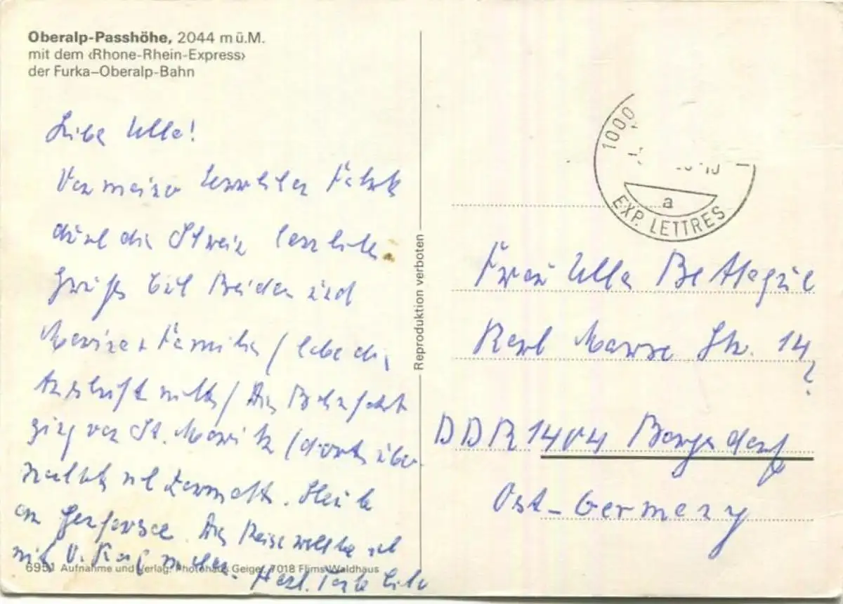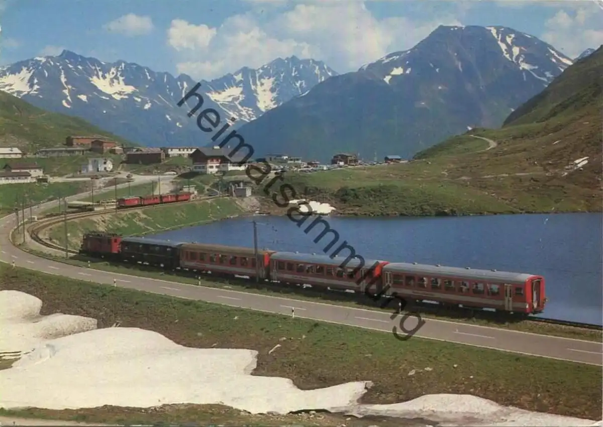 Oberalp-Passhöhe mit Rhone-Rhein-Express der Furka-Oberalp-Bahn - AK Grossformat - Gebrauchsspuren Marke entfernt (G62048) gel.