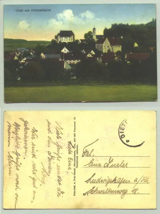 Artikelbeschreibung u. Zustand : Siehe Scan. Weitere Infos : Ansichtskarte. PLZ-Bereich pauschal 88481. Postalisch gelaufen, aber Marke geloest. Um 1920 ? Oder aelter ?