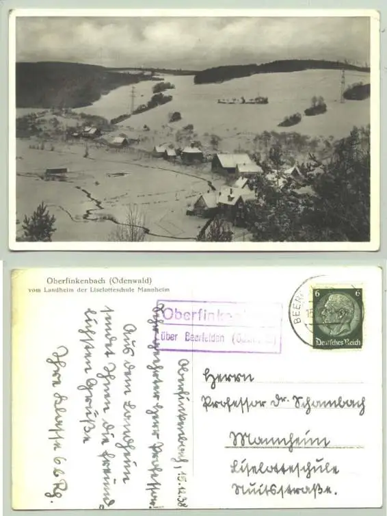 Oberfinkenbach 1938 (intern : 1019229) Artikelbeschreibung u. Zustand : Siehe Scan. Weitere Infos : Alte Ansichtskarte "Oberfinkenbach". PLZ-Bereich pauschal 64743. Beschrieben u. postalisch gelaufen mit Marke u. Stempel von 1938 und Zusatzstempel (Posthilfestempel) "Oberfinkenbach ueber Beerfelden (Odenwald)"