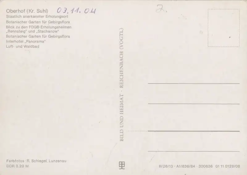 Postleitzahl:98559 (neu) / O 6055 (alt)