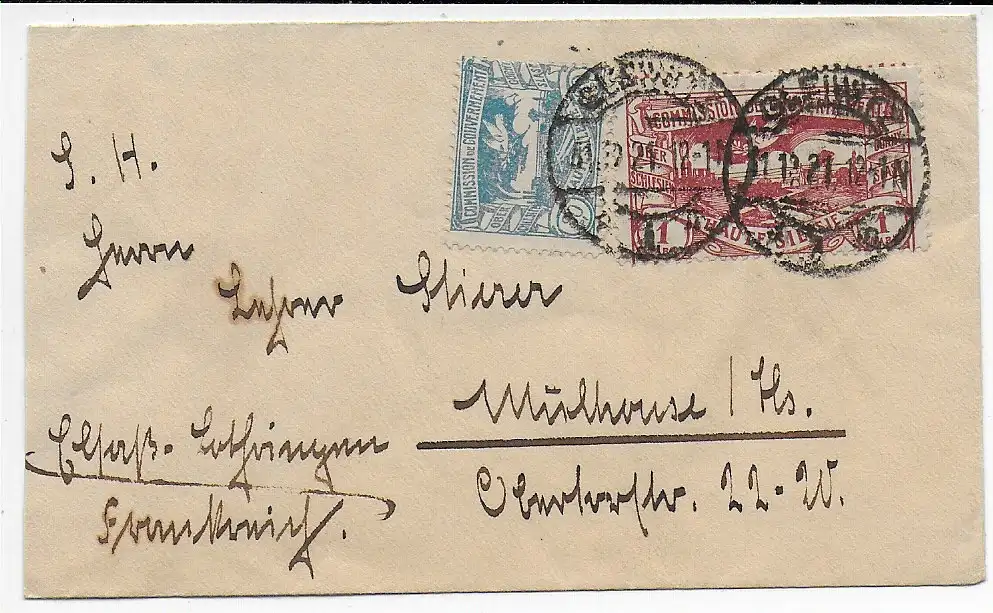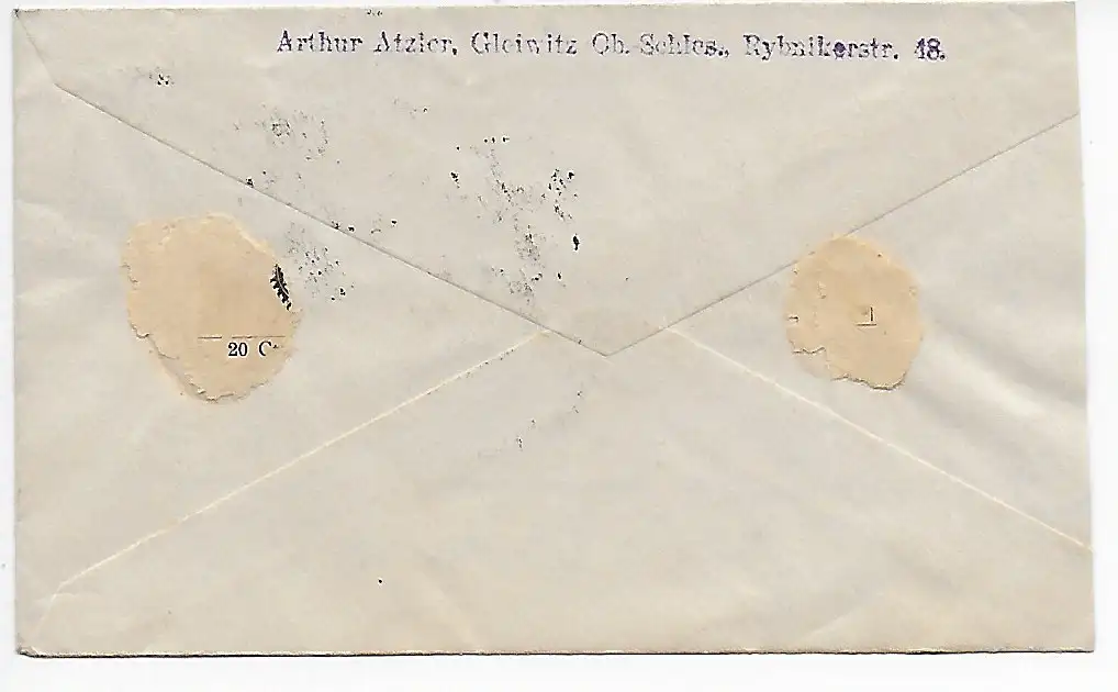 Oberschlesien 1921: Brief von Gleiwitz nach Mühlhouse/Els.