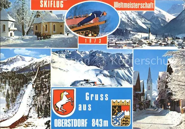 Oberstdorf Skiflug Weltmeisterschaft 1973 Schanze Panorama Oberstdorf postalisch gelaufen 1973 Erhaltung siehe scans Alte Ansichtskarte Postkarte MattID68