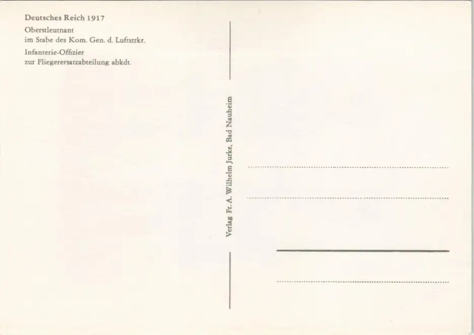 Oberstleutnant im Stabe des Kom. Gen. Fliegerersatzabteilung abkdt. 1917/1980