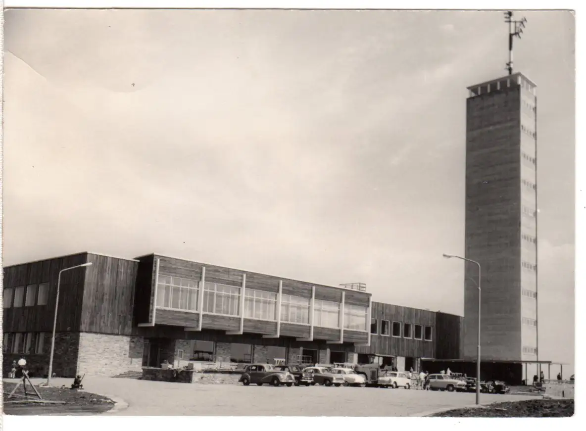 Oberwiesenthal, Fichtelberghaus m. parkenden Oldtimer Autos, ungebr. sw-AK