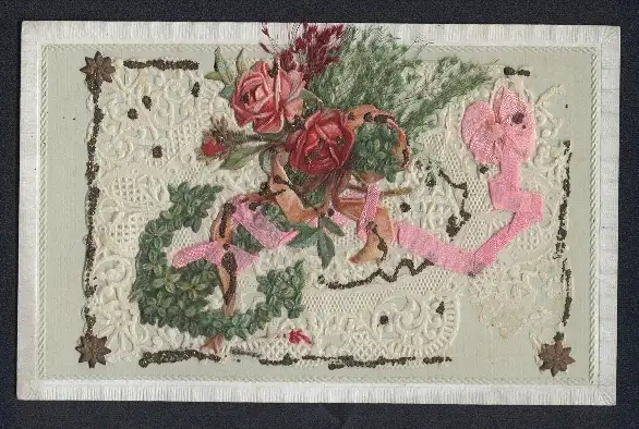 Oblaten-AK Blumengebinde mit Schleife